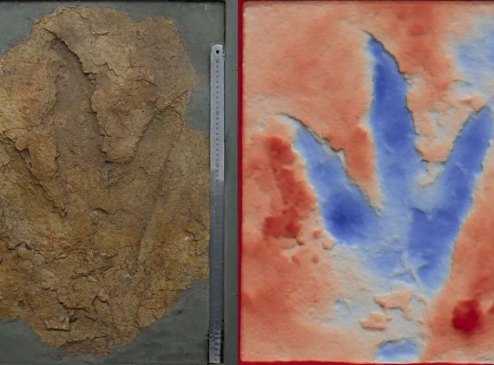 Romilio和他的团队没有研究恐龙的骨头,而是通过在石头上发现的、长约2.6英尺(80厘米)的超大三趾足迹来识别兽脚类恐龙。Romilio在6月12日发表在同行评审期刊《历史生物学》上的一篇论文中分享了他的发现。