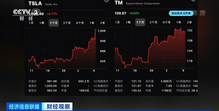 6月10日终于坐上美股全球市值第一的车企宝座。上市整十年,特斯拉股价从15美元飙升到1025美元,上涨近70倍,市值相当于7个福特、4.6个通用。