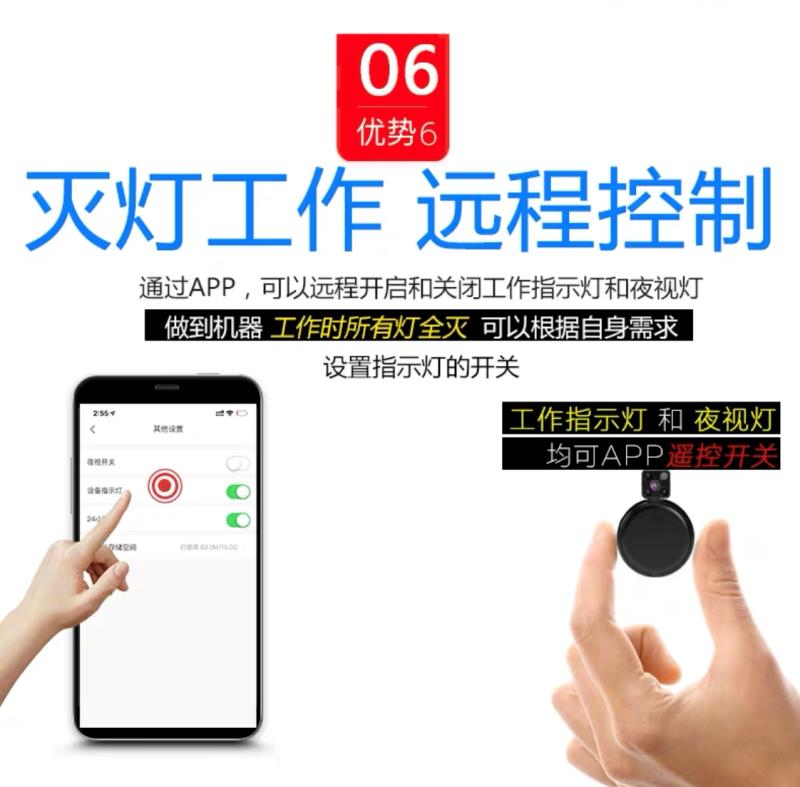 这类微型摄像头体积最小的只有一个指甲盖大小,但据称功能齐全。商品详情页介绍中,体积小、像素高、无需安装、夜视无光、超长待机是这类产品的主要功能。也有商家把“不亮灯、不吱声”“不易察觉”“随身走”等关键词放在了商品封面图上。