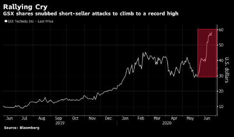 浑水公司创始人Carson Block再次对其上个月称之为骗子的中国课外教育平台跟谁学发起卖空攻击。Block今年5月对这家中国公司发起攻击,加入了其他卖空者质疑其业务模式、认为其数据好得令人无法相信的行列。Block声称,该公司至少70%的用户是机器人,其实有巨额亏损。该股票自那以来飙升超过90%,创出一年前上市以来的最高水平。
