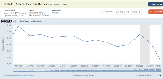 然而根据FRED提供的美国二手车经销商数据,在新冠疫情对车辆需求的严重打击下,自今年1月份至4月份,美国二手车销量至今已经减少超过40%,可见美国二手车市场情绪也并非Jefferies所预料的那样需求强劲。赫兹租车能否卖的出去15万辆二手车还是未知数。