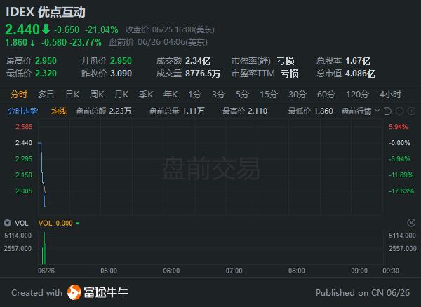 6月26日消息,截止发稿,优点互动盘前跌23.77%,报186美元。据报道,6月25日,J Capital Research发布了一则沽空报告,报告围绕优点互动近期获得的一些订单,可能涉及假消息,以及一些眼花缭乱的交易操作进行了披露。