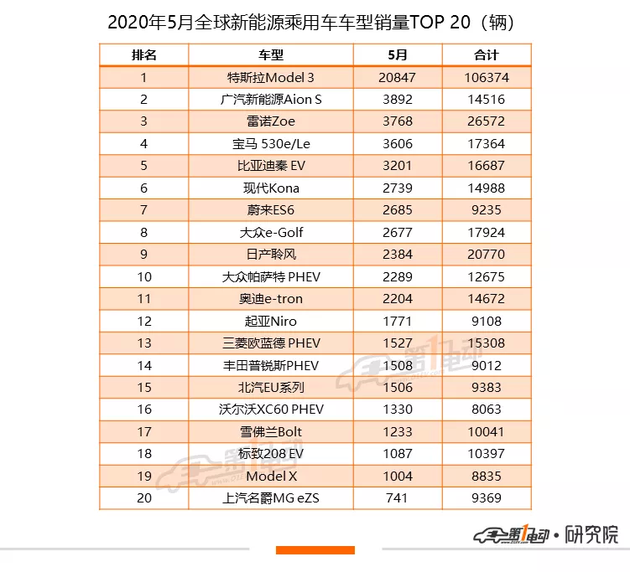 原标题:全球5月新能源车榜单:Model 3销量2万辆,中国市场贡献过半份额