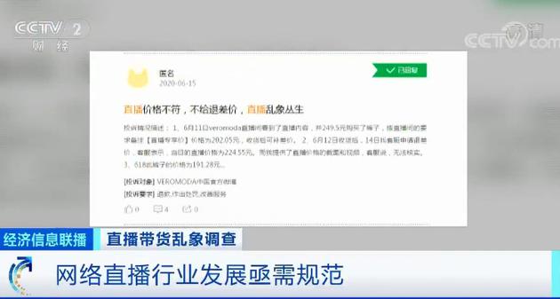 中国消费者协会新闻部副主任 王崴:要建立完善网络促销活动中直播带货、促销价格、红包优惠等行为的诚信评价机制,将违法情节严重、污点信息较多的平台、商家、网红等拉入黑名单。通过市场监管与消费维权相结合的方式,充分保障消费者合法权益。