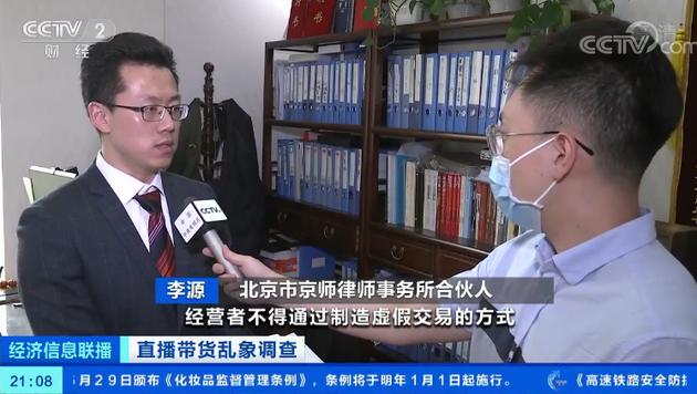 北京市京师律师事务所合伙人 李源:如果商家发的货物与主播所宣传的货物明显不一致,对于消费者的人身或者是财产利益造成了重大损害,其已经构成了违法。