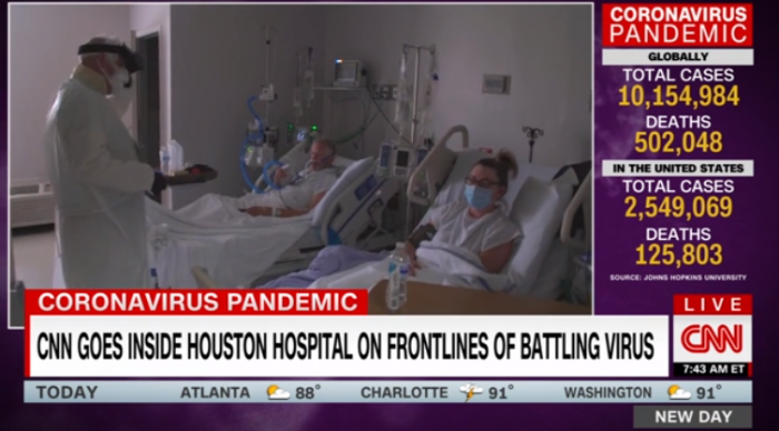 正如CNN的报道所表明的那样,休斯顿的住院人数激增并不是一个孤立的事件。圣安东尼奥市长罗恩-尼伦伯格最近发推文称医院已经人满为患。 加利福尼亚州的河滨县报告说,周末的ICU容量为99%(周一降至96%)。佛罗里达州的杰克逊卫生系统报告说,6月份仅两个多星期,病人就增加了108%。WPLG Local 10 报道称,"迈阿密-戴德医院的容量将在大约一个月内达到最大值"。
